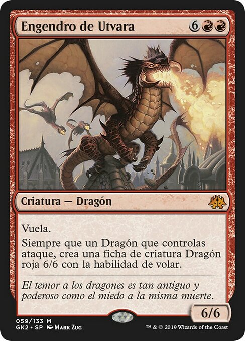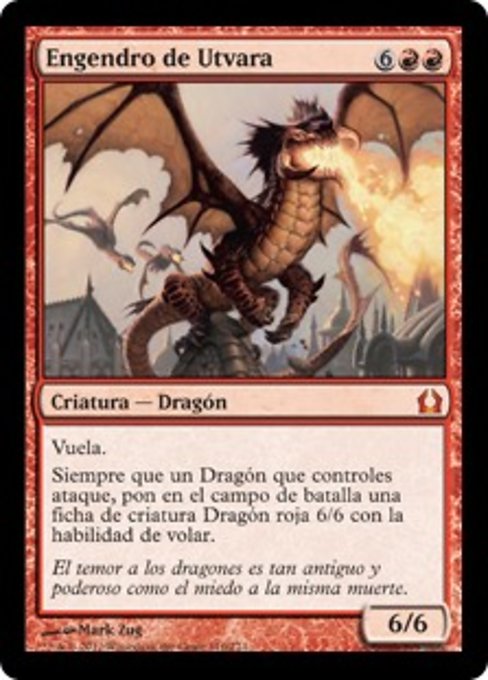 |  Variations : 2Parts— | Engendro de Utvara6 / 6 Vuela. Siempre que un Dragón que controlas ataque, crea una ficha de criatura Dragón roja 6/6 con la habilidad de volar.