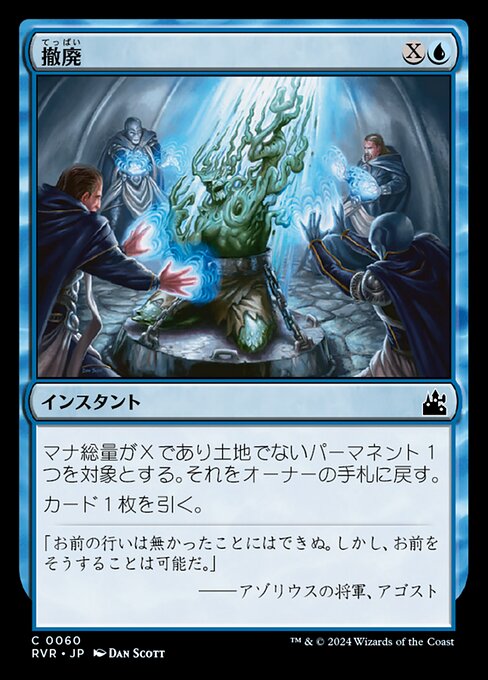 |  Variations— Parts— | AbrogationRenvoyez un permanent non-terrain ciblé ayant une valeur de mana de X dans la main de son propriétaire. Piochez une carte.