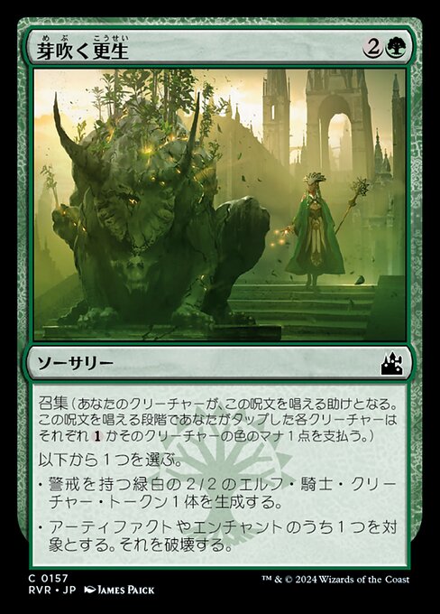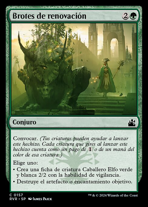 ![]() Variations— Parts— | Rinnovamento GermoglianteConvocazione (Le tue creature possono aiutarti a lanciare questa magia. Ogni creatura che TAPpi mentre lanci questa magia corrisponde al pagamento di Scegli uno — • Crea una pedina creatura Cavaliere Elfo 2/2 verde e bianca con cautela. • Distruggi un artefatto o un incantesimo bersaglio.