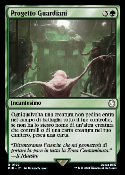 |  Variations : 2Parts— | Progetto GuardianiOgniqualvolta una creatura non pedina entra nel campo di battaglia sotto il tuo controllo, se non ha lo stesso nome di un'altra creatura che controlli o di una carta creatura nel tuo cimitero, pesca una carta.