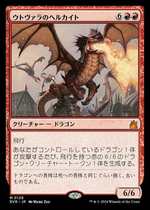 ![]() Variations : 2Parts— | Dragão Avérneo de Utvara6 / 6 Voar Toda vez que um Dragão que você controla atacar, crie uma ficha de criatura Dragão vermelha 6/6 com voar.