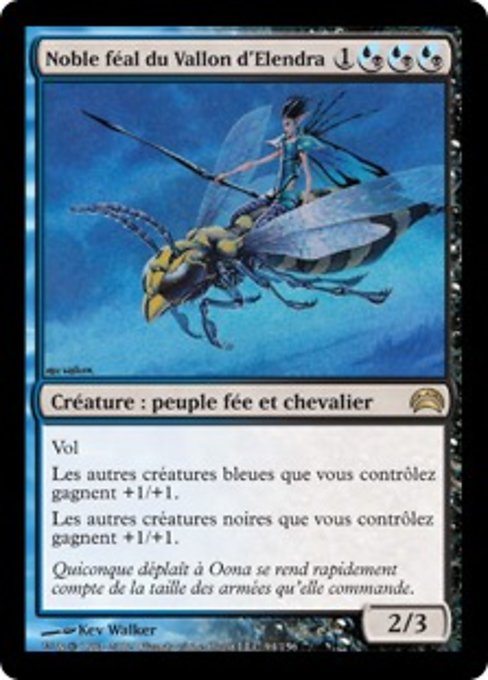 |  Variations— Parts— | Noble féal du Vallon d'Elendra2 / 3 Vol Les autres créatures bleues que vous contrôlez gagnent +1/+1. Les autres créatures noires que vous contrôlez gagnent +1/+1.