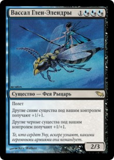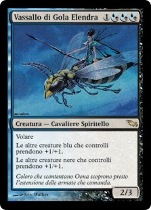 |  Variations— Parts— | エレンドラ谷のしもべ2 / 3 飛行 あなたがコントロールする他の青のクリーチャーは+1/+1の修整を受ける。 あなたがコントロールする他の黒のクリーチャーは+1/+1の修整を受ける。