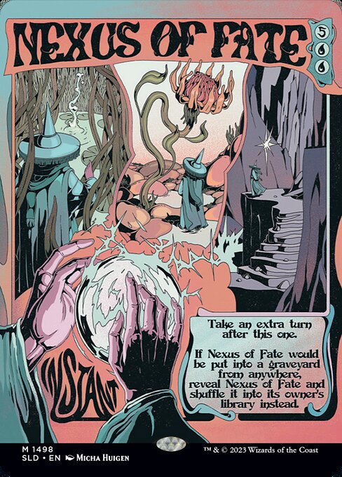 ![]() Variations— Parts— | Nexus of FateTake an extra turn after this one. If Nexus of Fate would be put into a graveyard from anywhere, reveal Nexus of Fate and shuffle it into its owner's library instead.