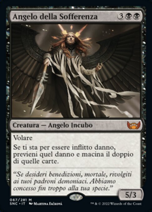 ![]() Variations : 1Parts— | Angel of Suffering5 / 3 Flying If damage would be dealt to you, prevent that damage and mill twice that many cards.