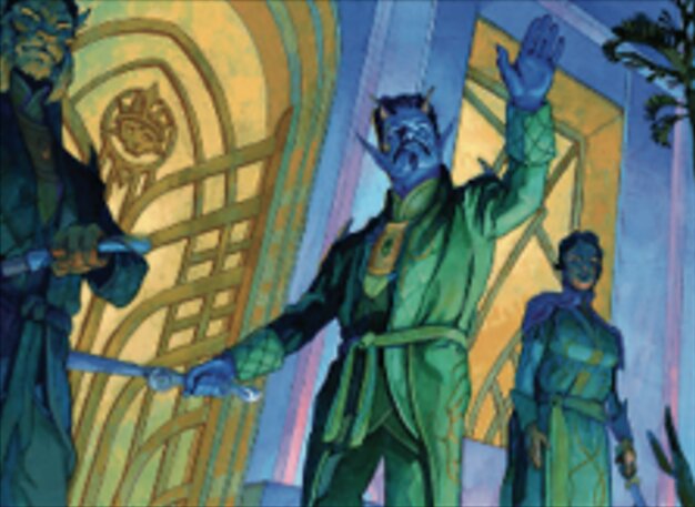 ![]() Variations : 2Parts— | Personnel d'accueil du gala1 / 1 Alliance — Whenever another creature you control enters, choose one that hasn't been chosen this turn — • Put a +1/+1 counter on this creature. • Create a tapped Treasure token. • You gain 2 life.