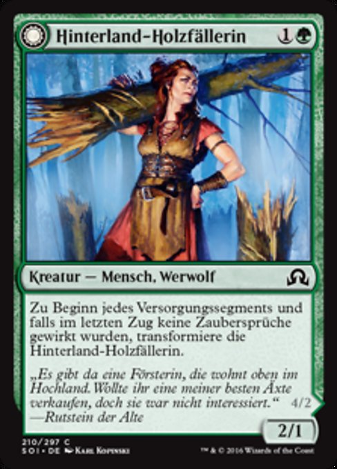 Zu Beginn jedes Versorgungssegments und falls im letzten Zug keine Zaubersprüche gewirkt wurden, transformiere die Hinterland-Holzfällerin.