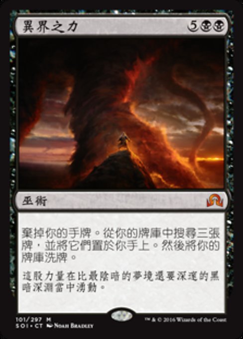 |  Variations— Parts— | Behold the BeyondDiscard your hand. Search your library for three cards, put them into your hand, then shuffle.