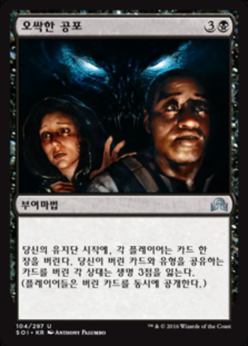![]() Variations— Parts— | Creeping DreadAt the beginning of your upkeep, each player discards a card. Each opponent who discarded a card that shares a card type with the card you discarded loses 3 life. (Players reveal the discarded cards simultaneously.)
