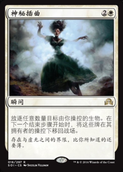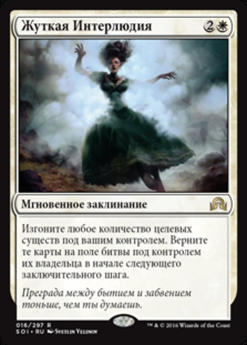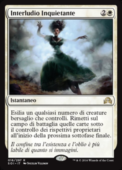 ![]() Variations— Parts— | Eerie InterludeExile any number of target creatures you control. Return those cards to the battlefield under their owner's control at the beginning of the next end step.