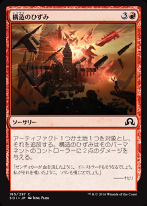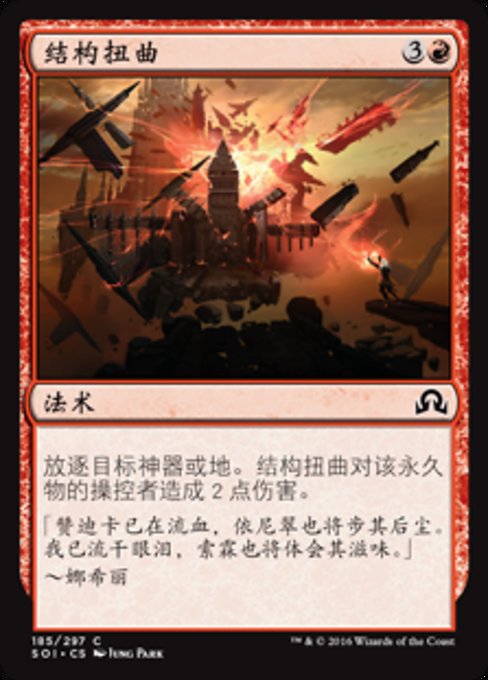 |  Variations— Parts— | Structural DistortionExile target artifact or land. Structural Distortion deals 2 damage to that permanent's controller.