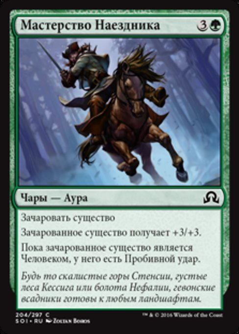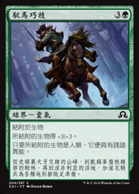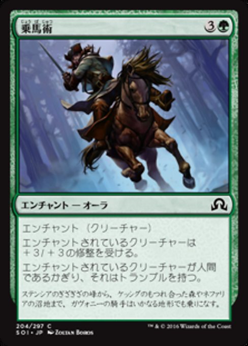 |  Variations— Parts— | Equestrian SkillEnchant creature Enchanted creature gets +3/+3. As long as enchanted creature is a Human, it has trample.