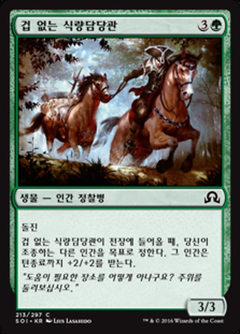 |  Variations— Parts— | Intrepid Provisioner3 / 3 Trample When this creature enters, another target Human you control gets +2/+2 until end of turn.