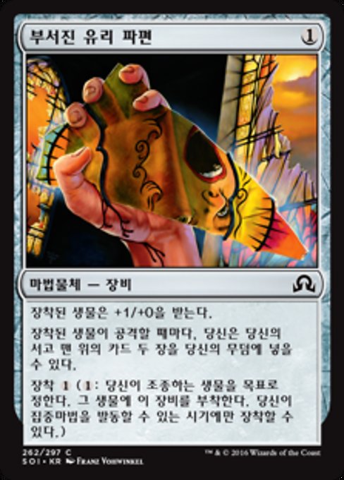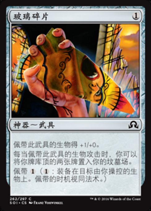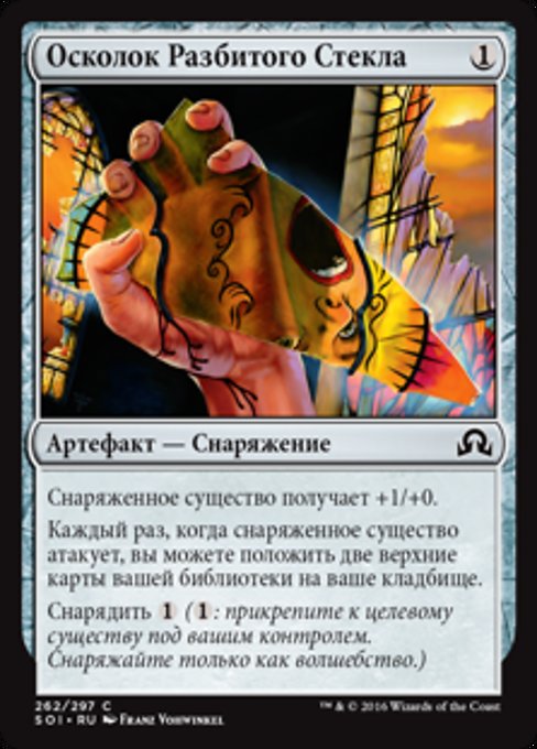 |  Variations— Parts— | Shard of Broken GlassEquipped creature gets +1/+0. Whenever equipped creature attacks, you may mill two cards. Equip