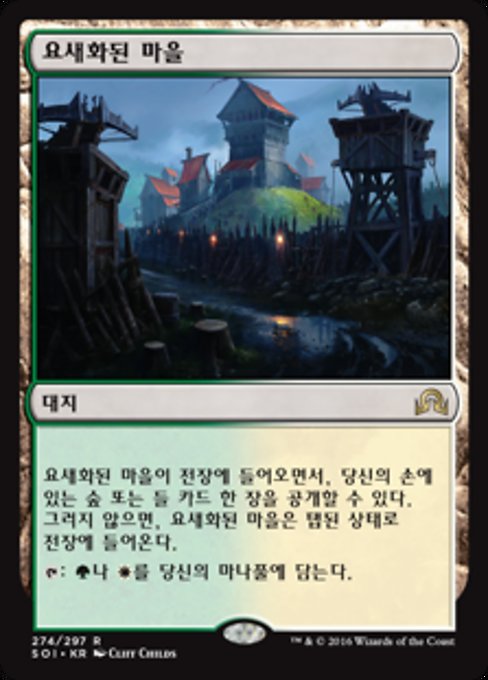 |  Variations— Parts— | Fortified VillageAs this land enters, you may reveal a Forest or Plains card from your hand. If you don't, this land enters tapped.