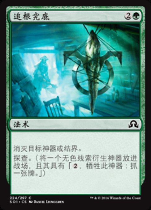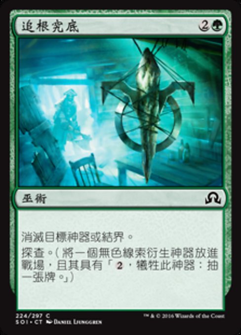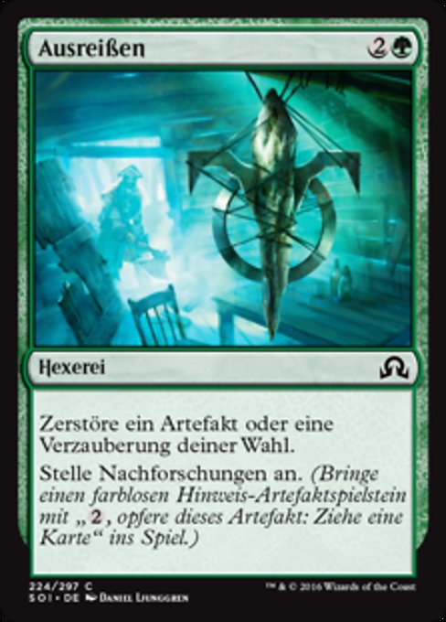 |  Variations— Parts— | DesraizarDestruye el artefacto o encantamiento objetivo. Investiga. (Pon en el campo de batalla una ficha de artefacto Pista incolora con "