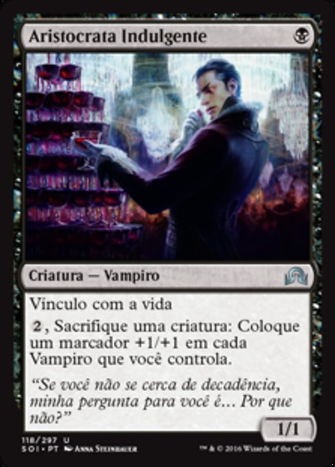 LegalitiesLegal Duel Brawl Legacy Modern Pioneer Vintage Historic Timeless Commander Gladiator Oathbreaker Not Legal Penny Predh Future Pauper Alchemy Standard Oldschool Premodern Standardbrawl Paupercommander RulingsYou can sacrifice Indulgent Aristocrat to pay the cost of its own activated ability.