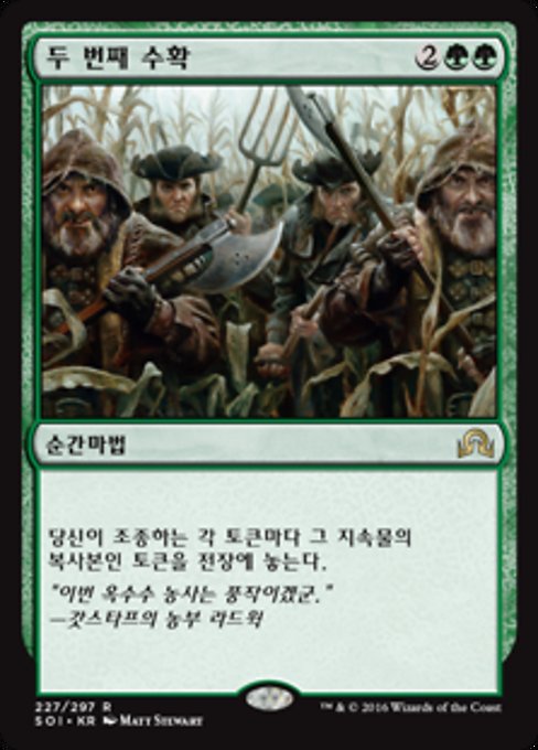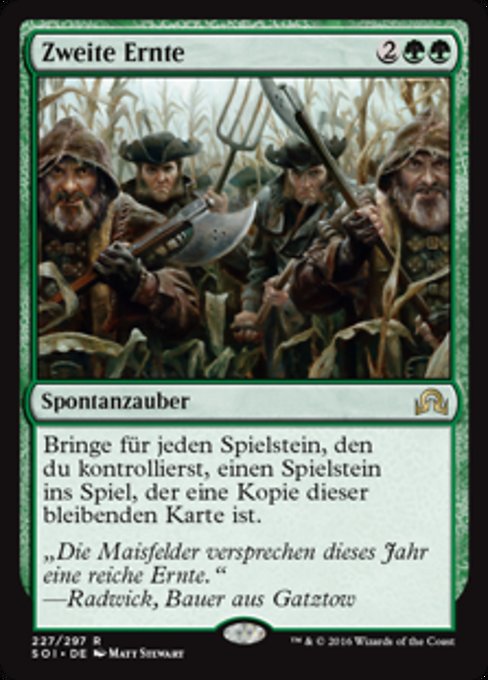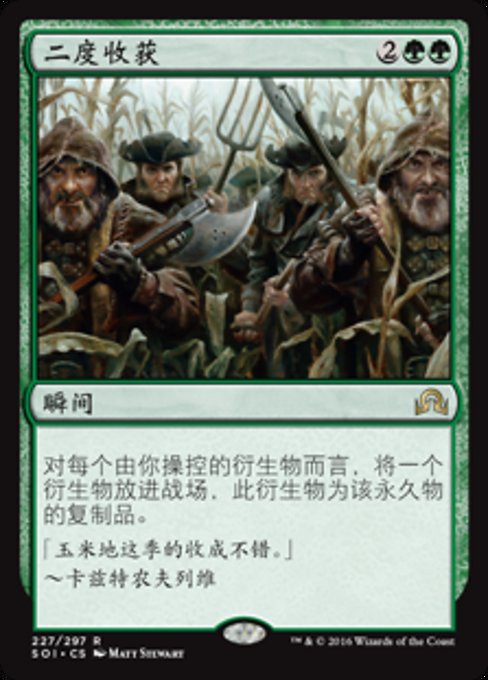 ![]() Variations— Parts— | Segunda ColheitaPara cada ficha que você controla, coloque no campo de batalha uma ficha que seja uma cópia daquela permanente.