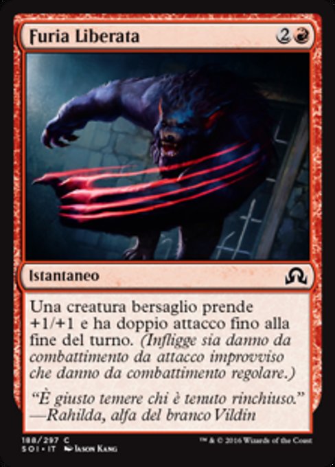 |  Variations— Parts— | 不羈憤怒直到回合結束,目標生物得+1/+1且獲得連擊異能。(它能造成先攻與普通戰鬥傷害。)