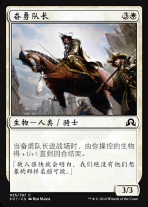 |  Variations— Parts— | 奮勇隊長3 / 3 當奮勇隊長進戰場時,由你操控的生物得+1/+1直到回合結束。