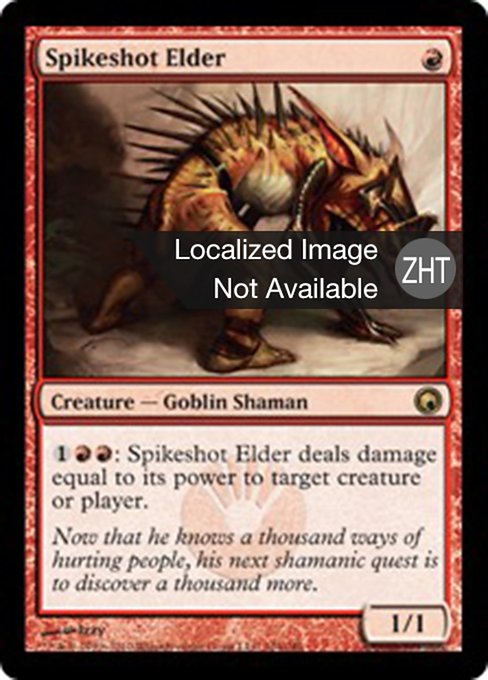LegalitiesLegal Duel Penny Predh Legacy Modern Vintage Commander Oathbreaker Not Legal Brawl Future Pauper Alchemy Pioneer Historic Standard Timeless Gladiator Oldschool Premodern Standardbrawl Paupercommander RulingsHow much damage Spikeshot Elder deals as a result of its ability is determined by its power as that ability resolves. If Spikeshot Elder is no longer on the battlefield at that time, its last existence on the battlefield is checked to determine its power.