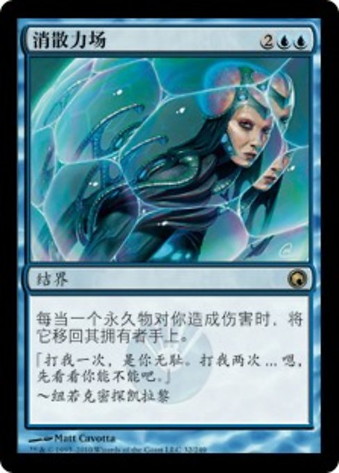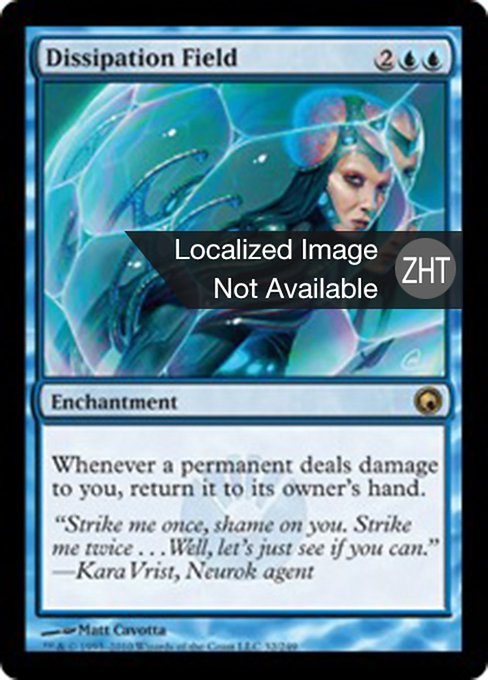 |  Variations— Parts— | Dissipation FieldWhenever a permanent deals damage to you, return it to its owner's hand.