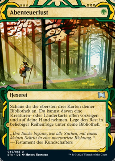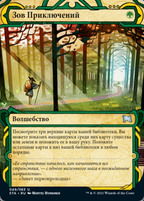 |  Variations— Parts— | Adventurous ImpulseLook at the top three cards of your library. You may reveal a creature or land card from among them and put it into your hand. Put the rest on the bottom of your library in any order.