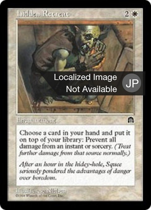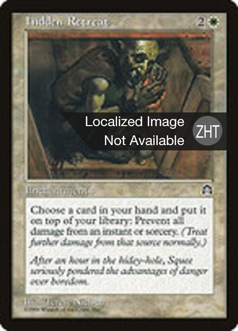|  Variations— Parts— | Hidden RetreatPut a card from your hand on top of your library: Prevent all damage that would be dealt by target instant or sorcery spell this turn.