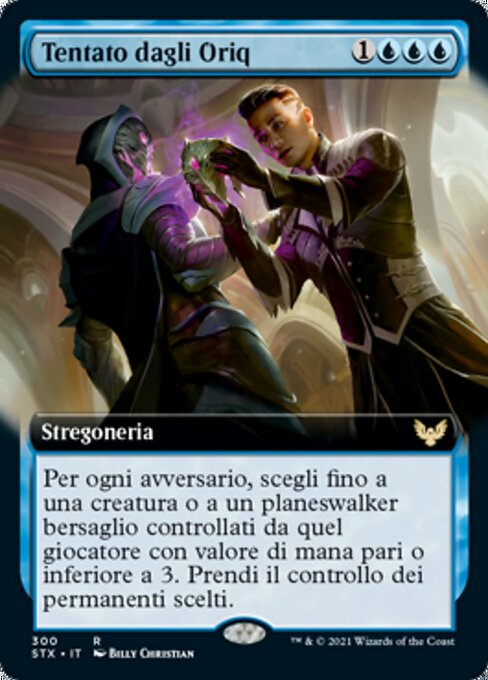 |  Variations : 1Parts— | Tempted by the OriqFor each opponent, gain control of up to one target creature or planeswalker that player controls with mana value 3 or less.