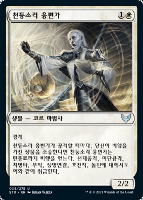 LegalitiesLegal Duel Brawl Legacy Modern Pioneer Vintage Historic Timeless Commander Gladiator Oathbreaker Not Legal Penny Predh Future Pauper Alchemy Standard Oldschool Premodern Standardbrawl Paupercommander RulingsIf you control a creature with one of the abilities listed in the last sentence, Thunderous Orator will gain the that ability, not flying.
