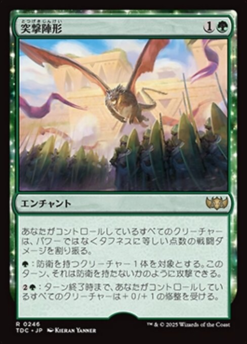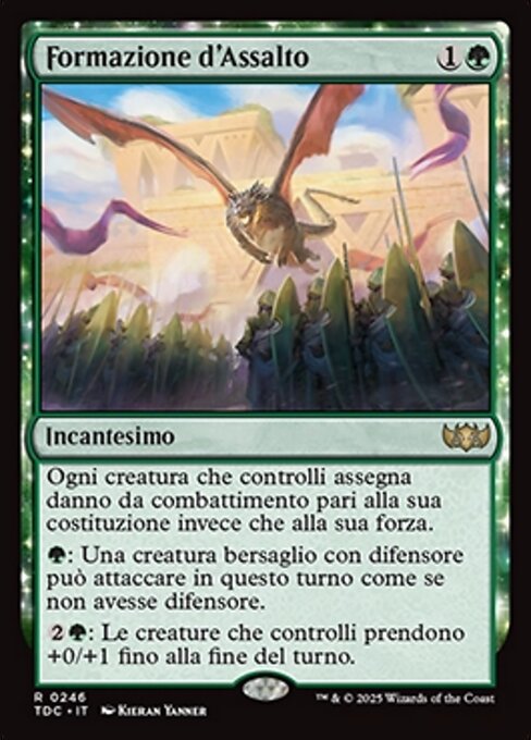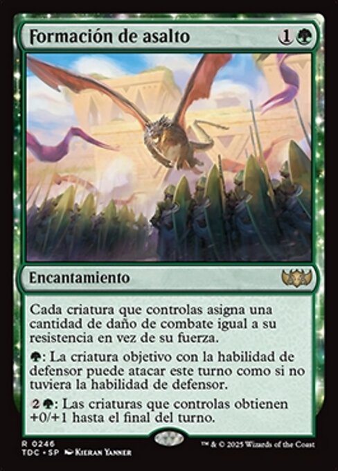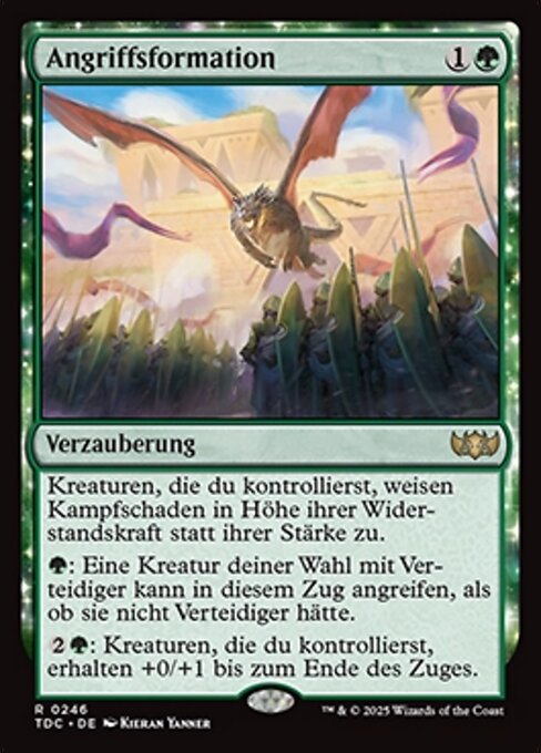 ![]() Variations— Parts— | AngriffsformationKreaturen, die du kontrollierst, weisen Kampfschaden in Höhe ihrer Widerstandskraft statt ihrer Stärke zu.