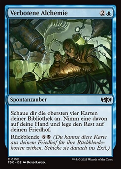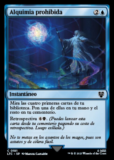 |  Variations— Parts— | Alquimia prohibidaMira las cuatro primeras cartas de tu biblioteca. Pon una de ellas en tu mano y el resto en tu cementerio. Retrospectiva