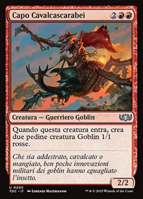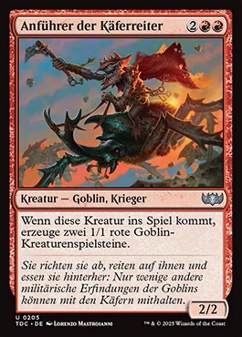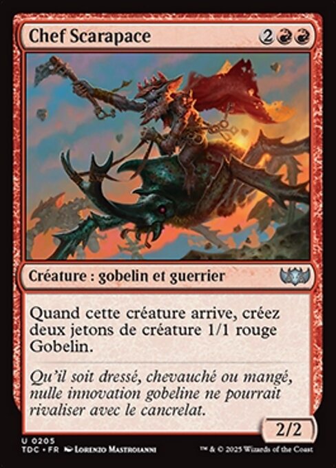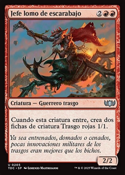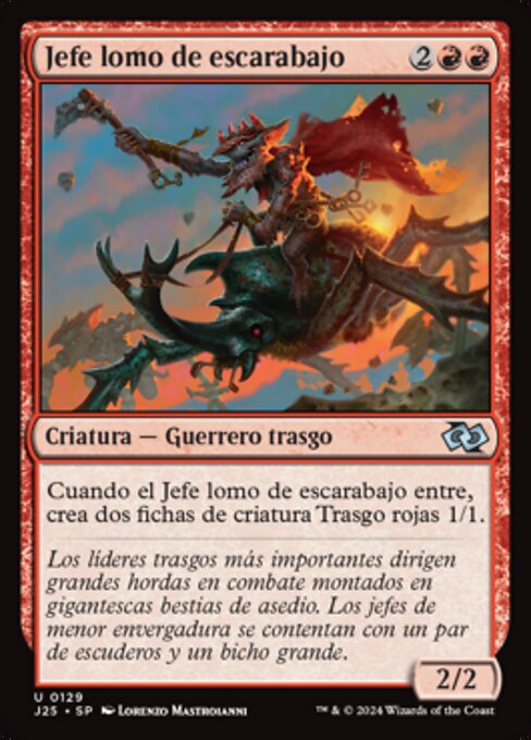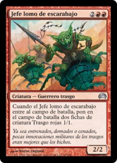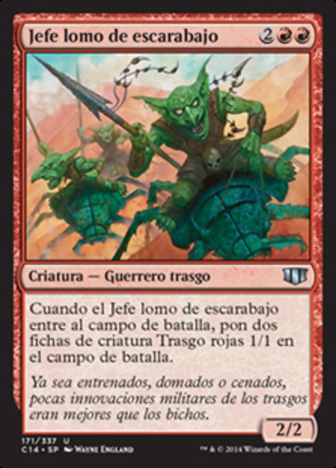 ![]() Variations— Parts— | Jefe lomo de escarabajo2 / 2 Cuando esta criatura entre, crea dos fichas de criatura Trasgo rojas 1/1.