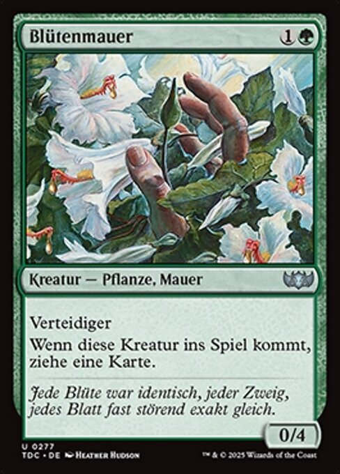 |  Variations— Parts— | Muro de flores0 / 4 Defensor. Cuando esta criatura entre, roba una carta.