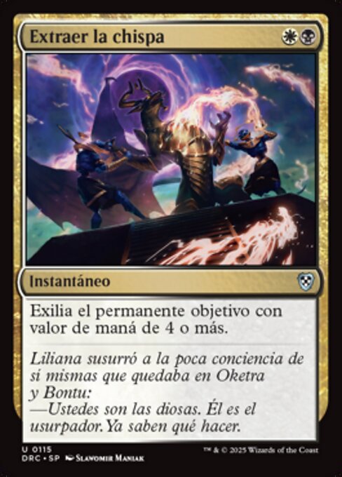|  Variations— Parts— | Extraer la chispaExilia el permanente objetivo con valor de maná de 4 o más.
