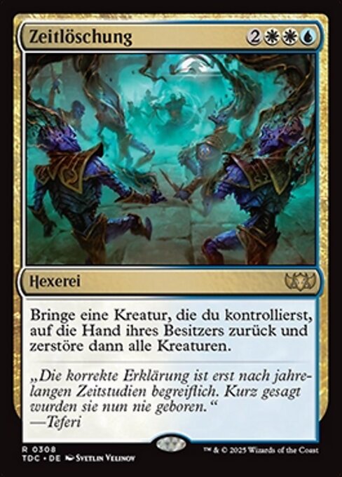 LegalitiesLegal Duel Brawl Penny Legacy Modern Pioneer Vintage Historic Timeless Commander Gladiator Oathbreaker Not Legal Predh Future Pauper Alchemy Standard Oldschool Premodern Standardbrawl Paupercommander RulingsYou chose which creature to return to its owner's hand while Time Wipe is resolving. No player may take any actions between the time you choose the creature to return and the time other creatures are destroyed.