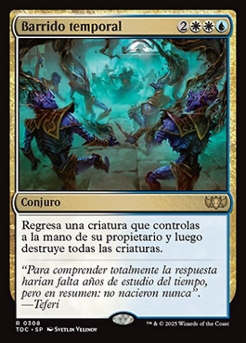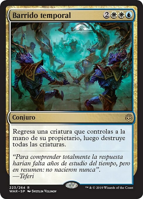 ![]() Variations— Parts— | Barrido temporalRegresa una criatura que controlas a la mano de su propietario y luego destruye todas las criaturas.