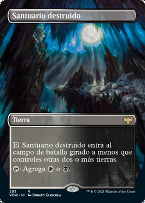![]() Variations— Parts— | Santuario destruidoEsta tierra entra girada a menos que controles otras dos o más tierras.