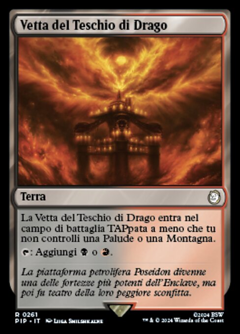 |  Variations— Parts— | Vetta del Teschio di DragoQuesta terra entra TAPpata a meno che tu non controlli una Palude o una Montagna.