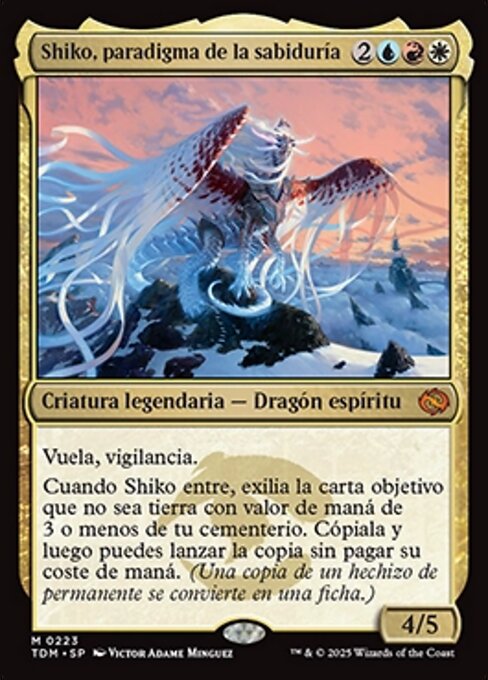 ![]() Variations : 2Parts— | Shiko, Paragon of the Way4 / 5 Flying, vigilance When Shiko enters, exile target nonland card with mana value 3 or less from your graveyard. Copy it, then you may cast the copy without paying its mana cost. (A copy of a permanent spell becomes a token.)