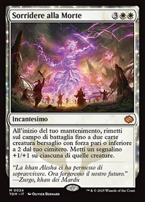 ![]() Variations : 1Parts— | Smile at DeathAt the beginning of your upkeep, return up to two target creature cards with power 2 or less from your graveyard to the battlefield. Put a +1/+1 counter on each of those creatures.