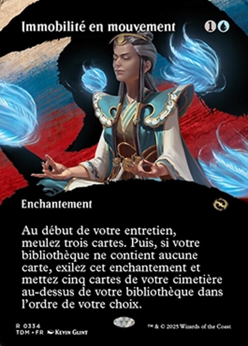 |  Variations : 1Parts— | Stillness in MotionAt the beginning of your upkeep, mill three cards. Then if your library has no cards in it, exile this enchantment and put five cards from your graveyard on top of your library in any order.