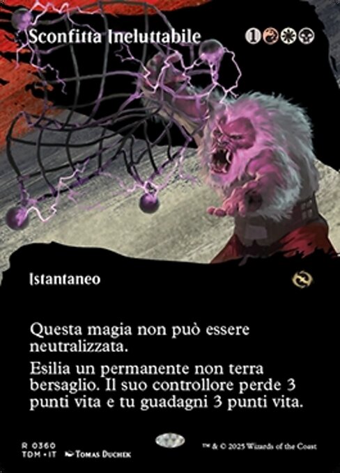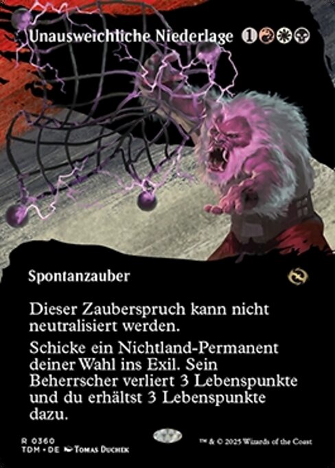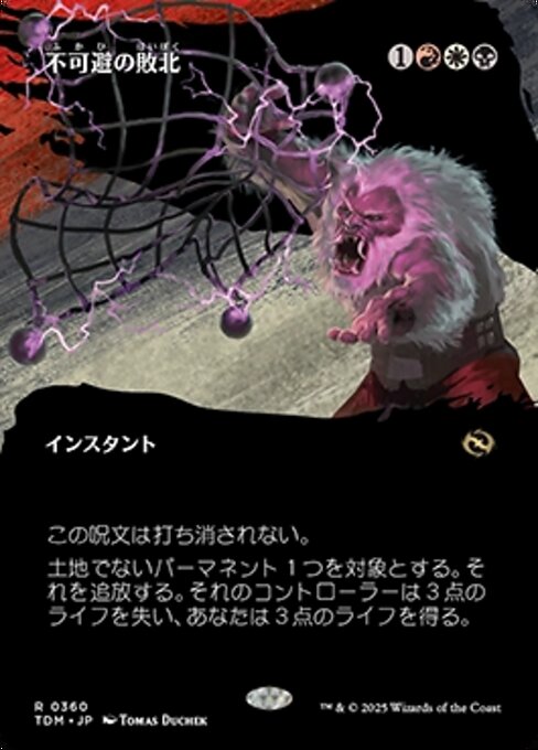 ![]() Variations : 1Parts— | Inevitable DefeatThis spell can't be countered. Exile target nonland permanent. Its controller loses 3 life and you gain 3 life.