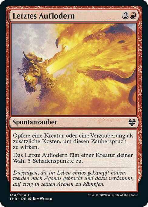 ![]() Variations— Parts— | Final FlareAs an additional cost to cast this spell, sacrifice a creature or enchantment. Final Flare deals 5 damage to target creature.