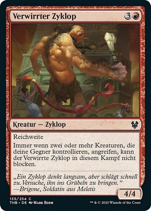 |  Variations— Parts— | Flummoxed Cyclops4 / 4 Reach Whenever two or more creatures your opponents control attack, this creature can't block this combat.