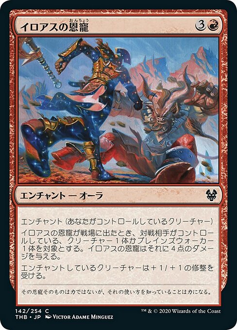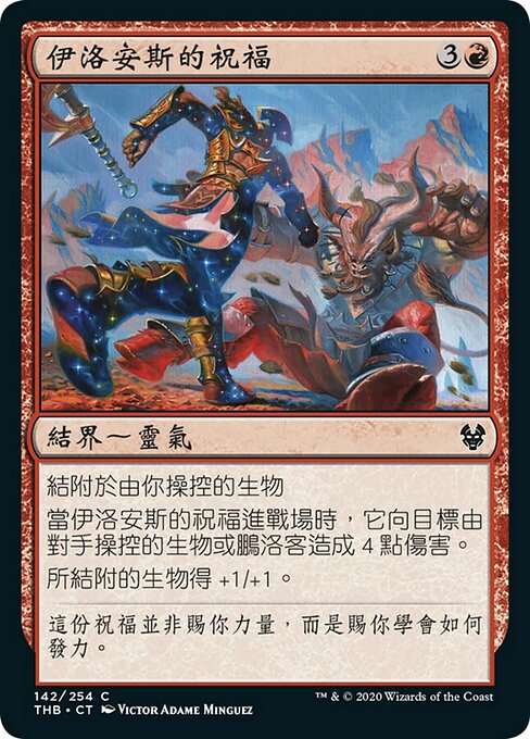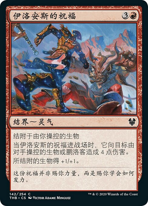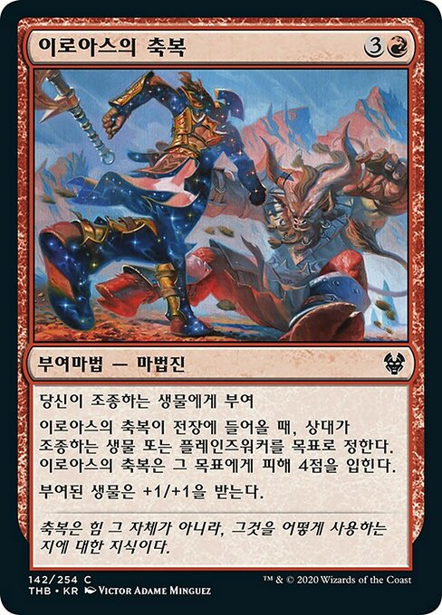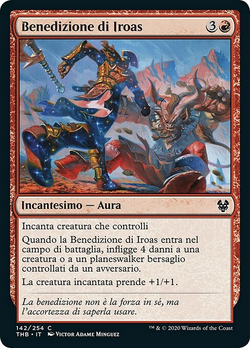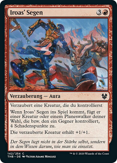 |  Variations— Parts— | Iroas's BlessingEnchant creature you control When this Aura enters, it deals 4 damage to target creature or planeswalker an opponent controls. Enchanted creature gets +1/+1.