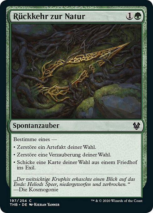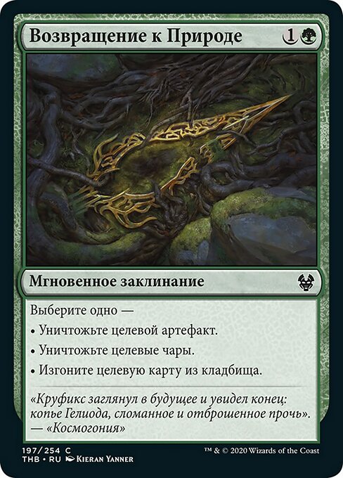 |  Variations— Parts— | Return to NatureChoose one — • Destroy target artifact. • Destroy target enchantment. • Exile target card from a graveyard.