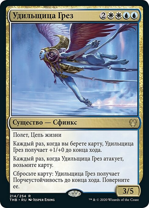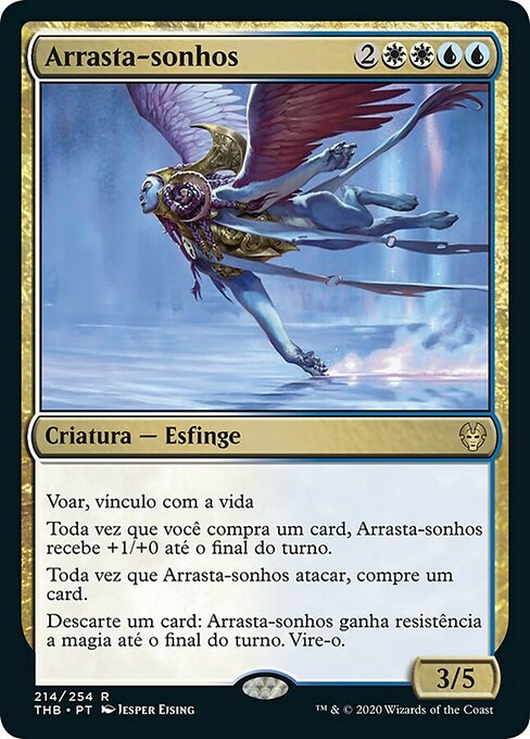 |  Variations : 1Parts— | Dream Trawler3 / 5 Flying, lifelink Whenever you draw a card, this creature gets +1/+0 until end of turn.Whenever this creature attacks, draw a card.Discard a card : This creature gains hexproof until end of turn. Tap it.