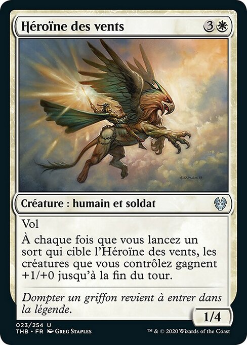 ![]() Variations— Parts— | Hero of the Winds1 / 4 Flying Whenever you cast a spell that targets this creature, creatures you control get +1/+0 until end of turn.