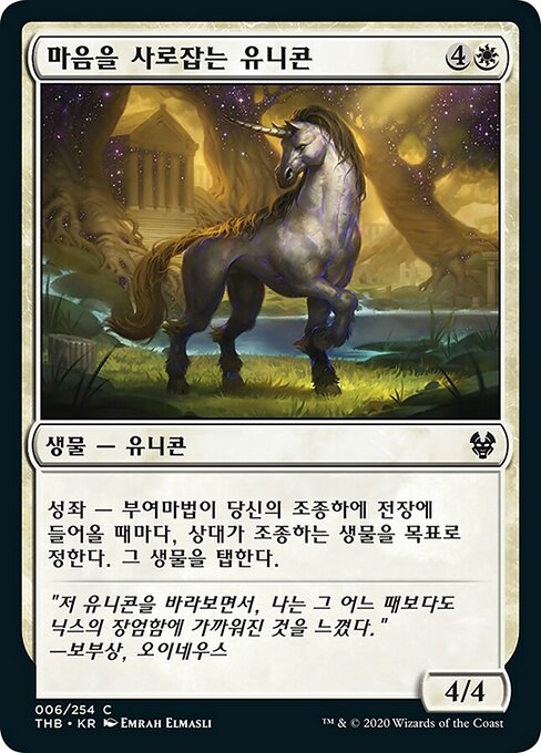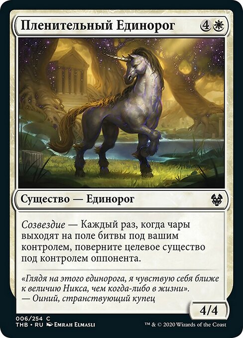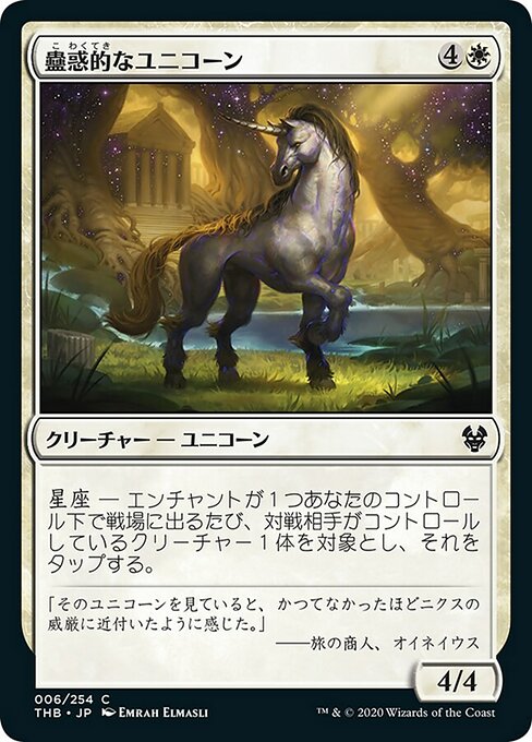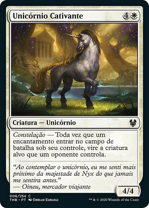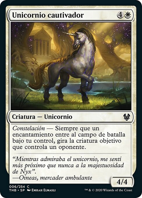 ![]() Variations— Parts— | Captivating Unicorn4 / 4 Constellation — Whenever an enchantment you control enters, tap target creature an opponent controls.
